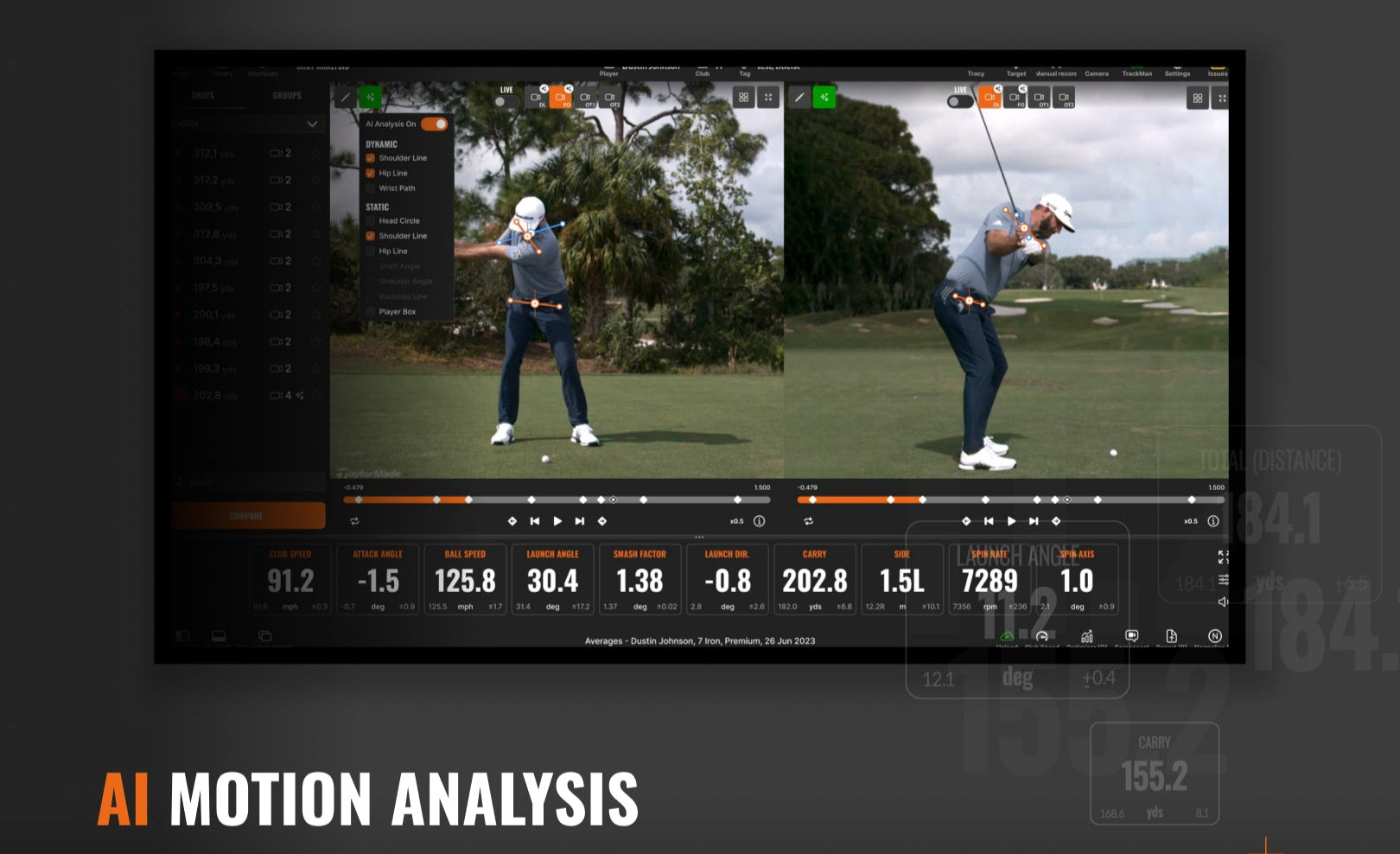 Utilizing AI, Trackman's Swing Analysis software allows golfers to independently analyze and evaluate their swing. Whether you want to focus on keeping your head still or rotating your body more, Trackman's motion analysis allows you to do all of that and more! All our Trackman units have 4 seperate cameras that let you see every angle of your swing. Click on our “Tracy AI” and after hitting a few balls, she will tell you what part of your game needs to be worked on. It’s like having your own private golf coach with you everytime you practice. Want to see your swing to a PGA Tour Player, the software will show your swing next to over 100 Tour Players, letting you see exactly what you need to work on. The options are truly endless. Our dedicated professional staff will always be close by to help you with any of these features.